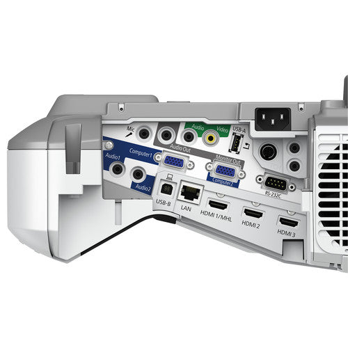 The BrightLink 695Wi sports an ultra-short 0.28 to 0.45:1 throw ratio to virtually eliminate on-screen shadows and minimize the risk of shining in a presenter's eyes. It has VGA, composite video, and three HDMI inputs to support a variety of source types. One HDMI input is MHL-compatible for wired mirroring of your compatible smartphone or tablet.