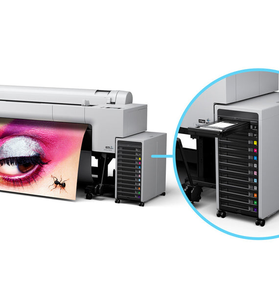 12 color UltraChrome Pro12 Ink and widest gamut in tis class and industry leading print permanence. High Capacity 1.6 liter Ink Pack System for increases efficiency and less plastic waste. Advanced Media Handling with BorderFree printing and support for posterboard and a wide variety of fine art and photo media