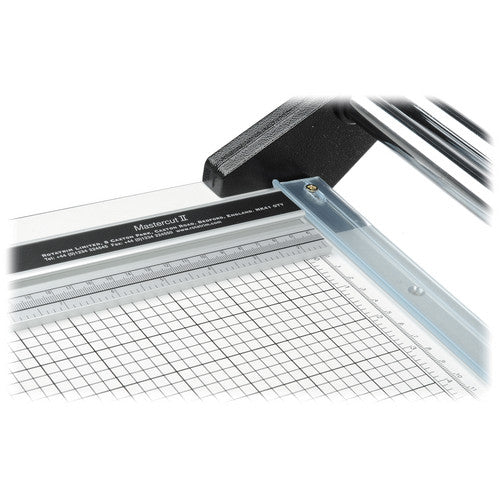 The Rotatrim RC RCM20 Professional-20 (20" Cut) Rotary Cutter is robust, reliable, and compatible for use with rotary trimmers. It features a hand-finished tungsten steel flat construction, and the rotary blades offer accuracy. A solid laminated MDF girded baseboard with precision side rule and cursor provides accuracy in work. It offers a long duty life, and is virtually maintenance free. The self-clamping strip offers a clear view of the cut and enables you to secure the work in place. Featuring a twin chrome-plated steel guide rail design, the RC RCM20 provides complete resistance to the swivel cutting head.