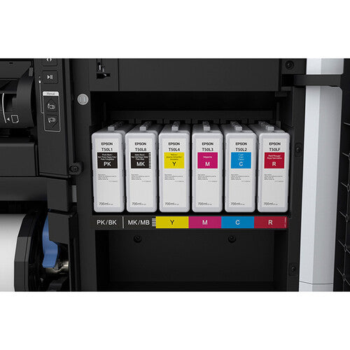 The advanced printer uses the Epson 6-color UltraChrome XD3 ink, which includes a red cartridge. The integrated Adobe Embedded Print Engine with four on-board Intel Atom CPUs quickly processes complicated PDF data and accurately reproduces transparent design layers at speeds up to three times faster than previous generations. With a purpose-built, reliable design with complete front operation, the SureColor T7770D seamlessly produces crisp, detailed prints even when pushed against the wall. The printer features automatic roll loading and a dual roll/take-up system, allowing you to efficiently integrate it into most production workflows.